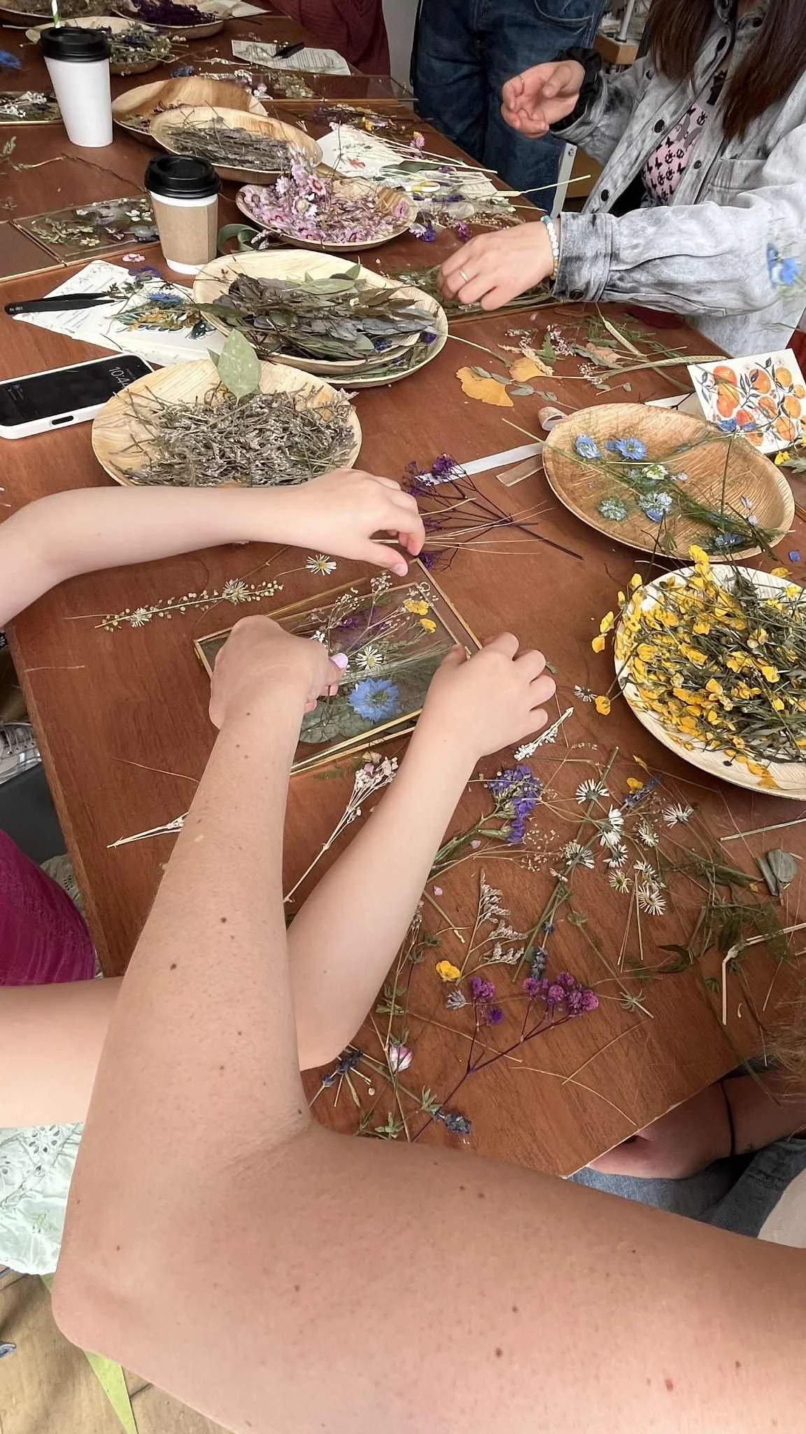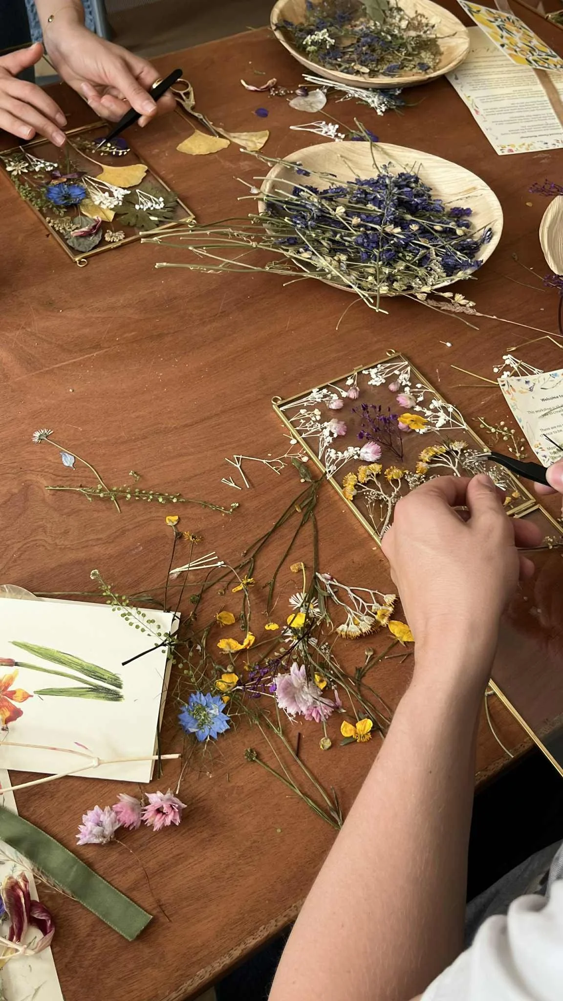 The option to bring your own pressed flowers if you’d like to use them in your piece